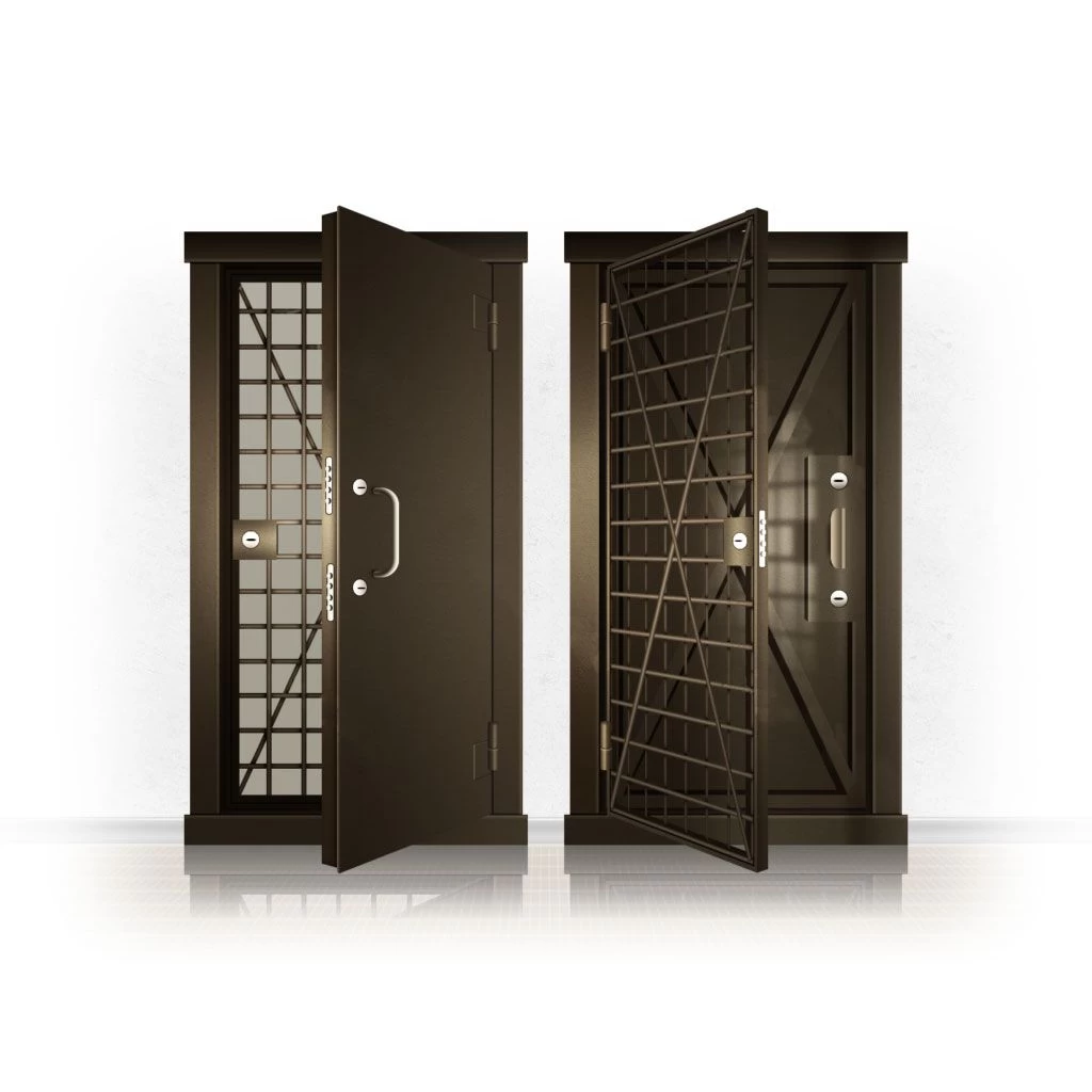 Металлические двери КХО и КХН представляют собой входные блоки, обладающие высоким уровнем взломостойкости и состоят из трех основных элементов: усиленного каркаса, сплошного металлического полотна и решетчатой двери. Дверной блок изготавливается из стального уголка 100*100 мм. Места крепления блока к стене цементируются и закрываются стальными наличниками шириной 40 мм. Крепеж заходит вглубь стены на 80 мм. В конструкции внешней створки монтируются ребра жесткости, для обшивки используется сталь толщиной не менее 3 мм. Внутренняя решетка изготавливается из прутка диаметром 16 мм. Размер ячеек решетки должен составлять не более 15 на 15 см. В точках пересечения прутья надежно приваривают друг к другу. В КХО и КХН необходимо поддерживать определенную температуру и влажность. Для этого внутреннее пространство глухой двери заполняется теплоизоляционным материалом, а по периметру двери приклеивается уплотнитель. Такие двери оборудуются замками с повышенным уровнем взломостойкости. Специализированные двери КХО и КХН в Талдоме могут быть оснащены сигнализацией, в конструкции могут быть проушины для навесного замка и элементами для опечатывания. Если идет речь о двери в комнату хранения оружия, в створке оборудуется окно для выдачи оружия и спец. средств, которое накрывается стальной дверцей.